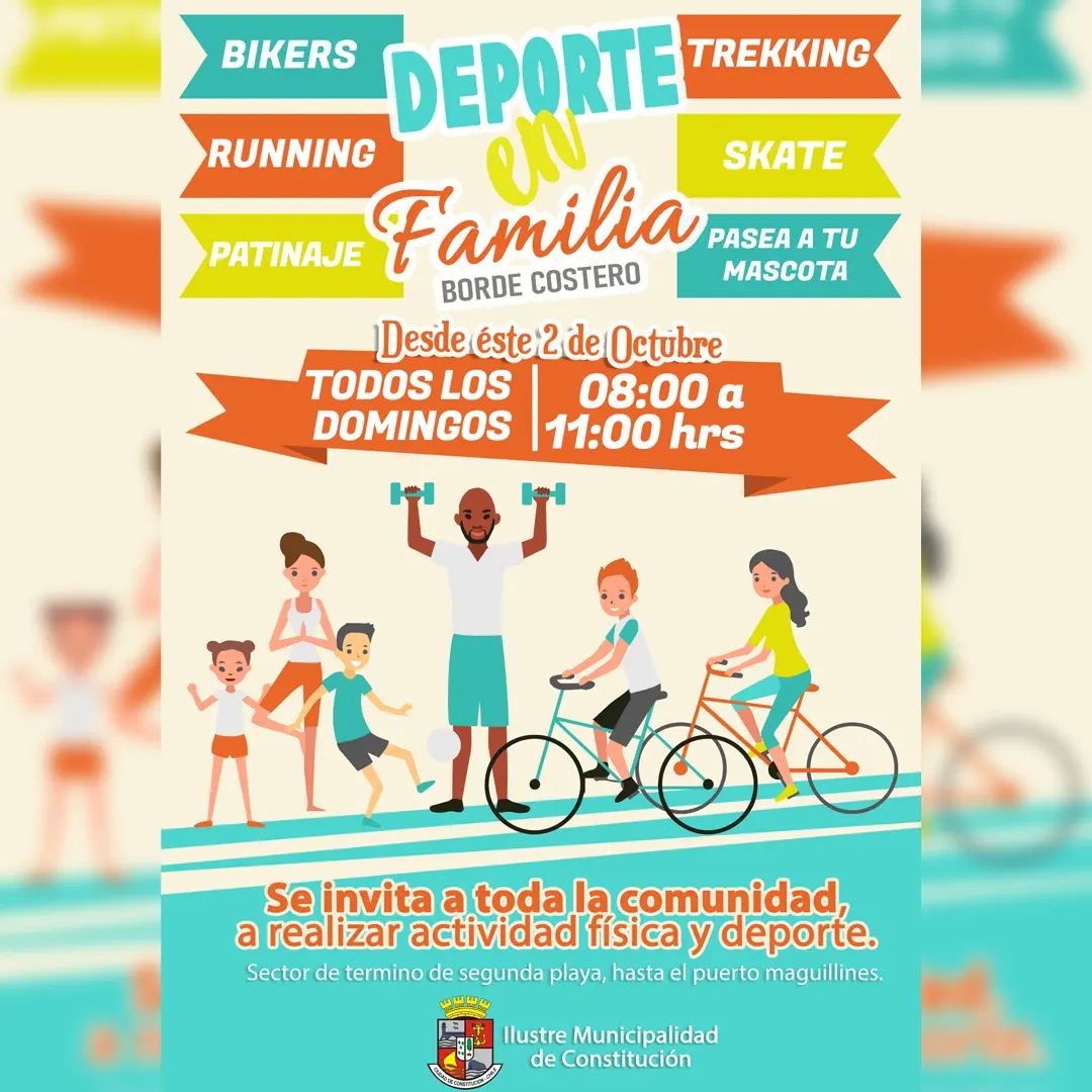 A partir de este domingo 02 de octubre y en adelante todos los domingos, llega al borde costero de Constitución la actividad #DeporteEnFamilia organizada por el municipio de dicha comuna.