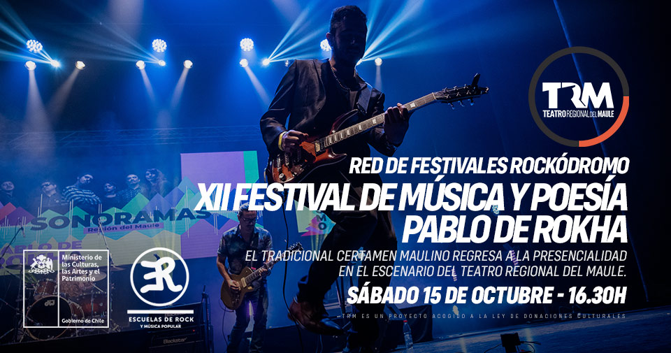 Tras dos años de ediciones transmitidas por streaming, el festival de música, Pablo de Rokha, en su décimo segunda edición, regresa a lo presencial con un imperdible concierto gratuito en el escenario del TRM, con diez bandas de la Región del Maule, una invitada desde la Región de Ñuble y un número nacional pronto a confirmar.