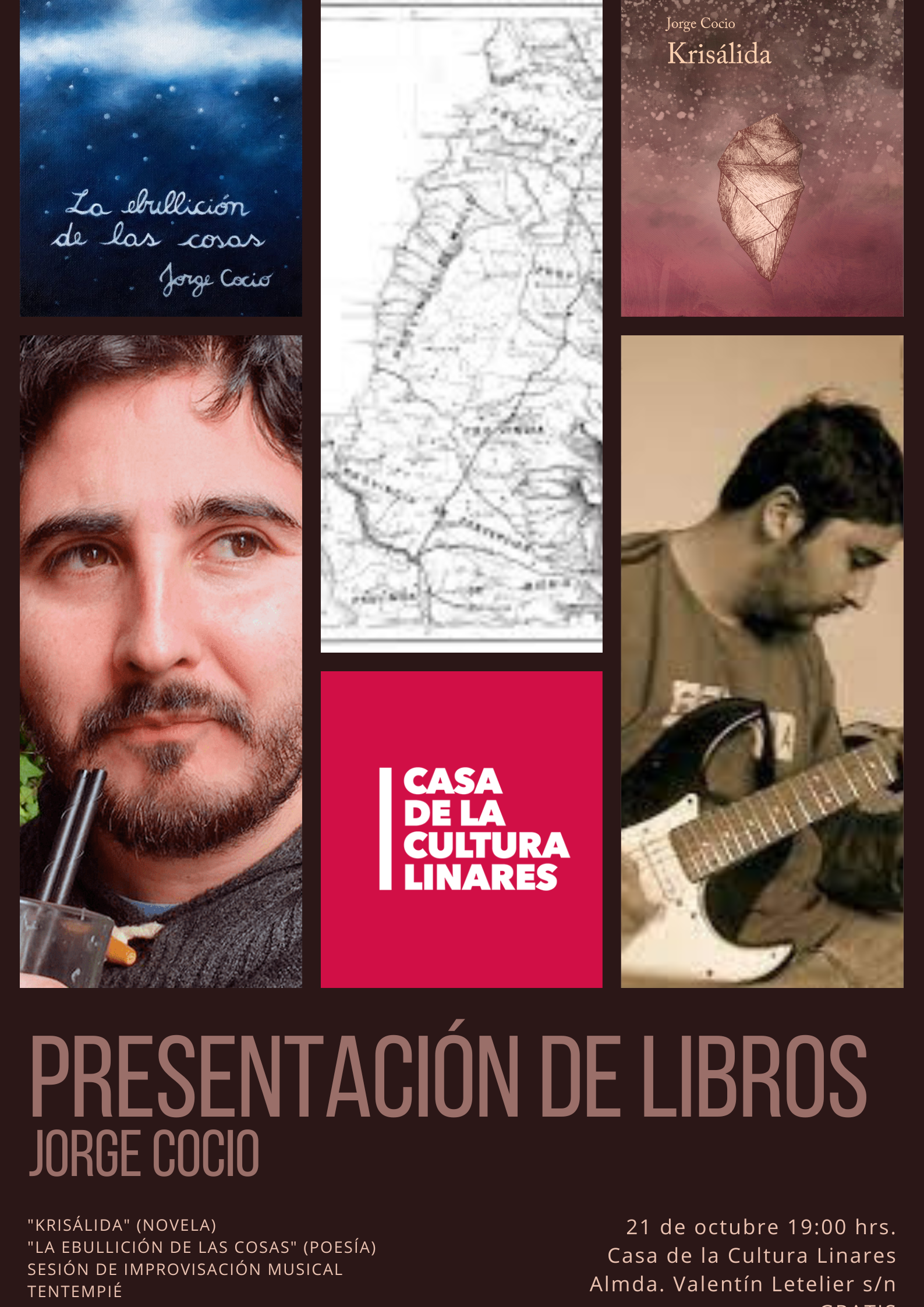 Este viernes 21 de octubre a las 19:00 horas, se desarrollará la presentación de los textos más recientes del escritor chillanejo Jorge Cocio. La actividad se desarrollará en la Casa de la Cultura Linares, ubicada en Manuel Rodríguez y Alameda Valentín Letelier s/n.