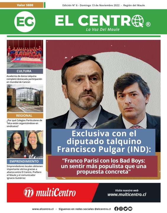 Como todos los domingos llega a los principales quioscos de la Región del Maule, una nueva edición del semanario El Centro. Entre sus páginas encontrarás una entrevista en exclusiva con el diputado por el Maule Francisco Pulgar, donde expresó su visión tras ser expulsado de la bancada del Partido De la Gente (PDG).