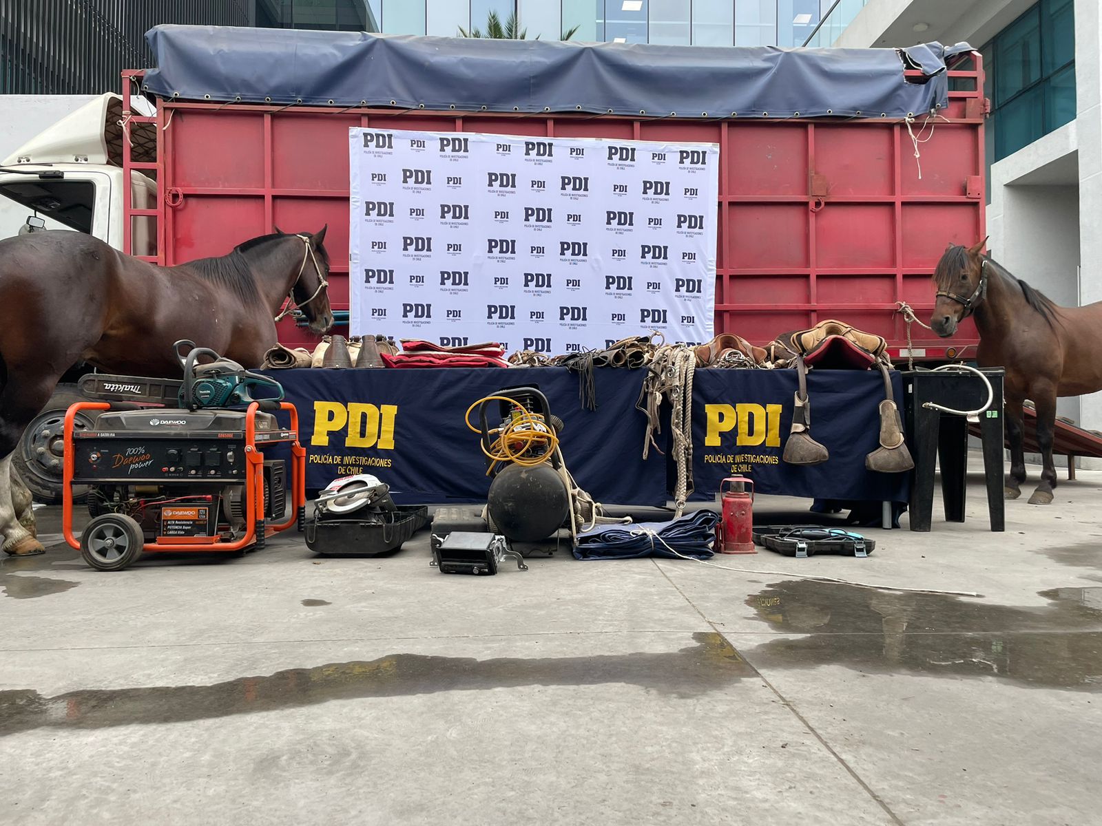 Así, en coordinación con la Fiscalía SACFI que mantiene un foco investigativo por robo de aperos, detectives de dicha brigada especializada realizaron diversas diligencias científico-técnicas, de inteligencia policial y análisis criminal, lo que permitió durante la tarde del mismo día encontrar abandonada la camioneta camino a Yerbas Buenas, mientras que el camión, uno de los caballos y diferentes aperos y herramientas fueron encontrados en Lampa, Región Metropolitana, en donde se detuvo a un hombre y una mujer, por receptación flagrante.
