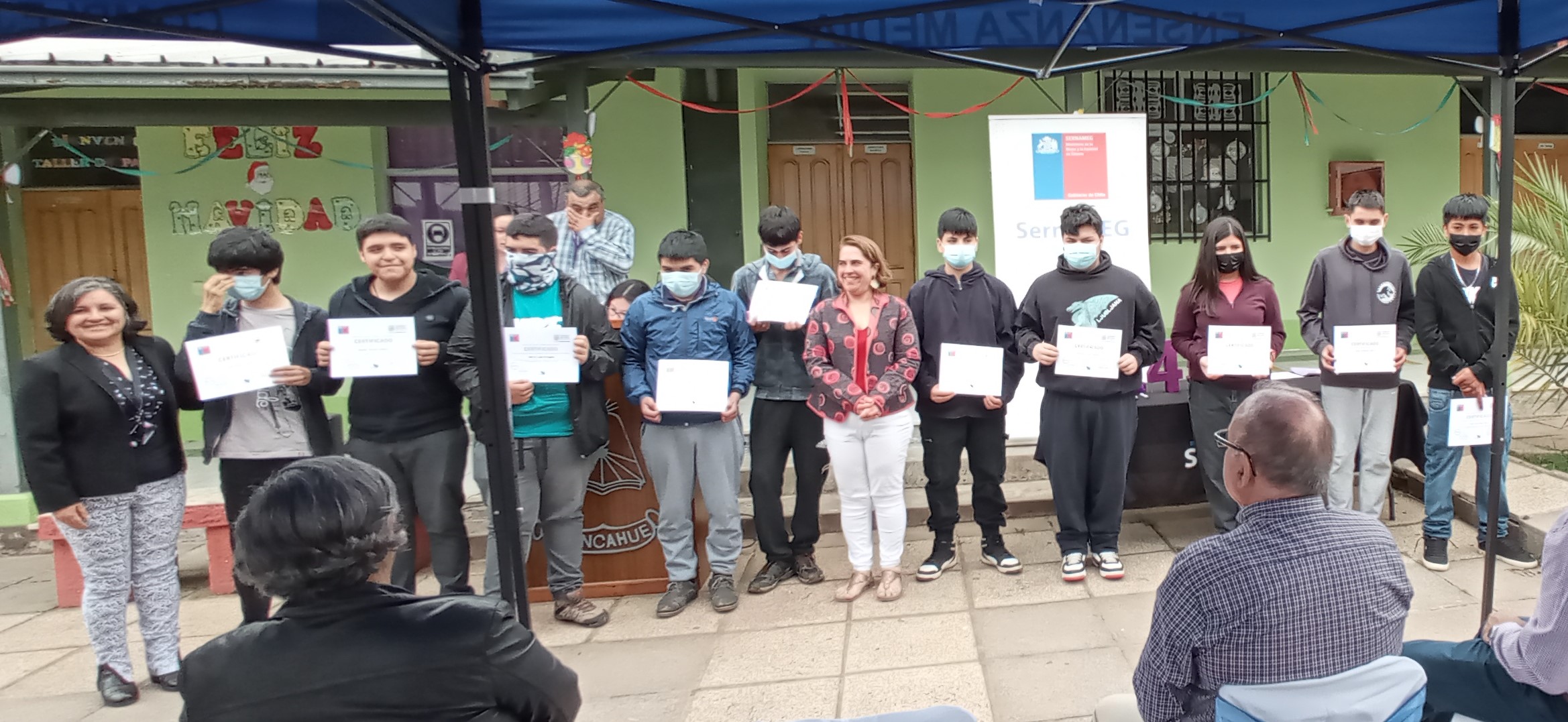 En total, fueron 80 jóvenes de los cuatro niveles de la enseñanza media que completaron con éxito este proceso y se certificaron por primera vez, en la historia del Complejo Educacional como monitores y monitoras de prevención en violencia contra las mujeres y de género, una de las líneas de acción del Servicio Nacional de la Mujer y la Equidad de Género con el objetivo de aportar a la erradicación de esta problemática.