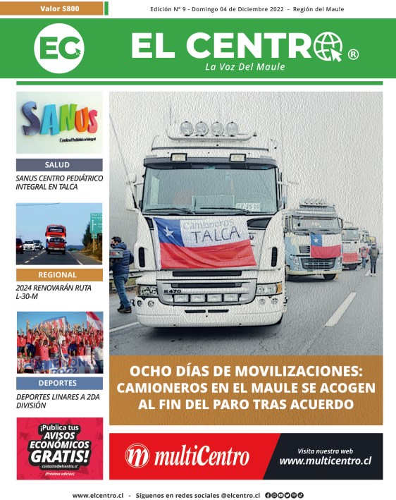 Como todas las semanas, El Centro trae en su versión en papel, toda la información más relevante de los hechos ocurridos en Chile y la Región del Maule. En esta edición encontrarás el más completo detalle sobre los ocho días de movilizaciones de los camioneros en diferentes puntos del país y en Talca, además de los acuerdos que logró el Gobierno con los gremios del transporte y que lograron destrabar el conflicto.