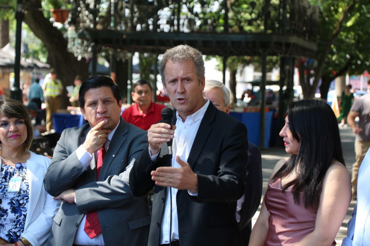 Una licitación para transporte público en zonas aisladas de la Región del Maule fue anunciada por el ministro de Transportes y Telecomunicaciones, Juan Carlos Muñoz; el delegado presidencial regional, Humberto Aqueveque, y la seremi Ximena Oliva en la Plaza de Armas de Curicó.