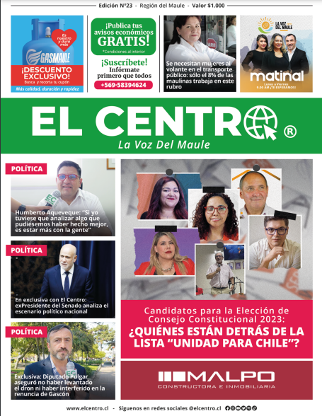 La 23° edición de tu semanario preferido tiene en la portada la invitación a conocer más a fondo a los candidatos constitucionales maulinos de la lista “Unidad Para Chile”, por otra parte, la tapa también muestra un nuevo aniversario del Regimiento de Talca y la problemática del financiamiento del transporte escolar en Longaví.