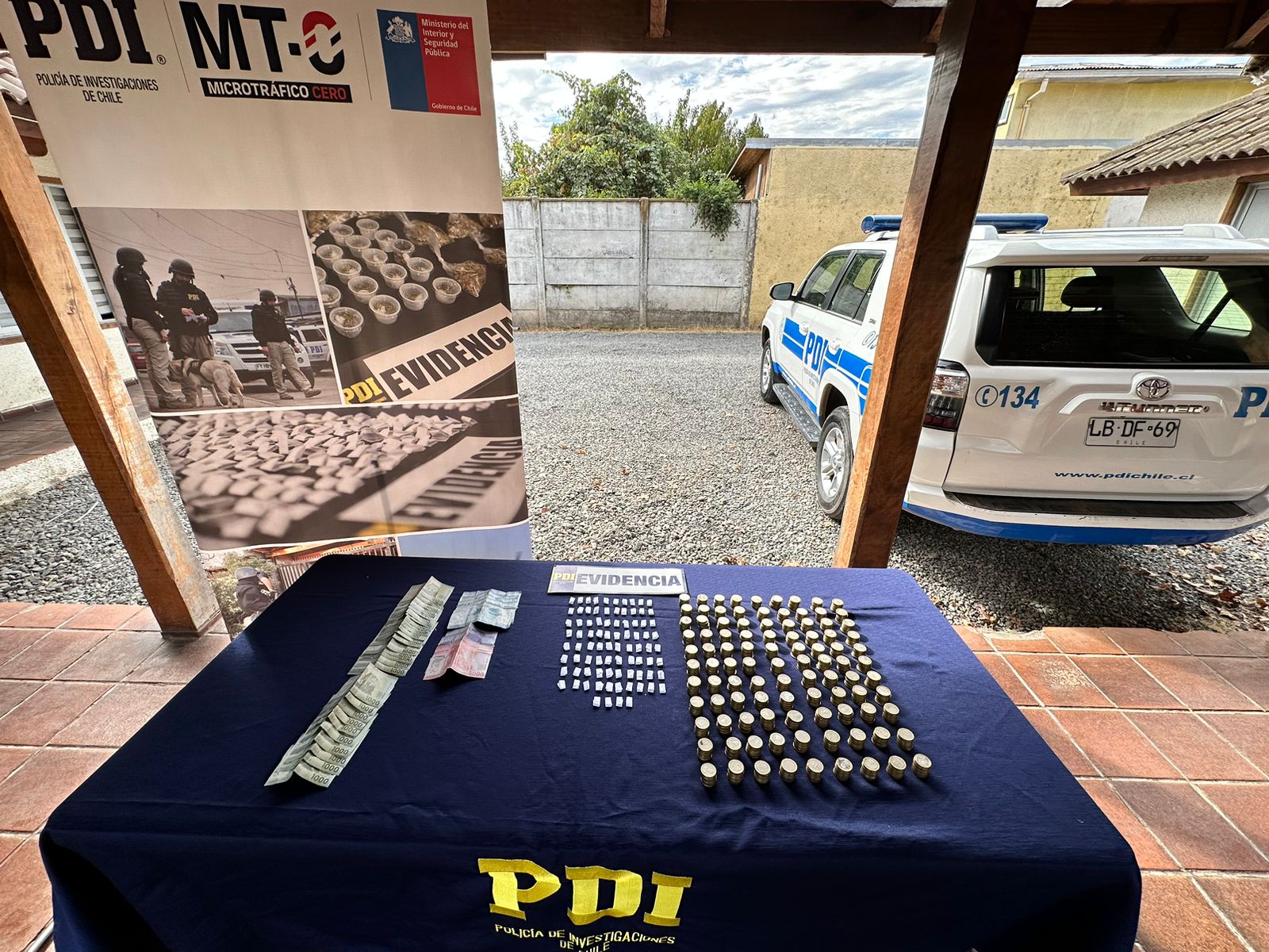 Detectives del equipo MT-0 de la BRIANCO Curicó, en investigación coordinada con la Fiscalía Local, lograron acreditar ventas en pequeñas cantidades de sustancias ilícitas en la población Los Aromos de la comuna.