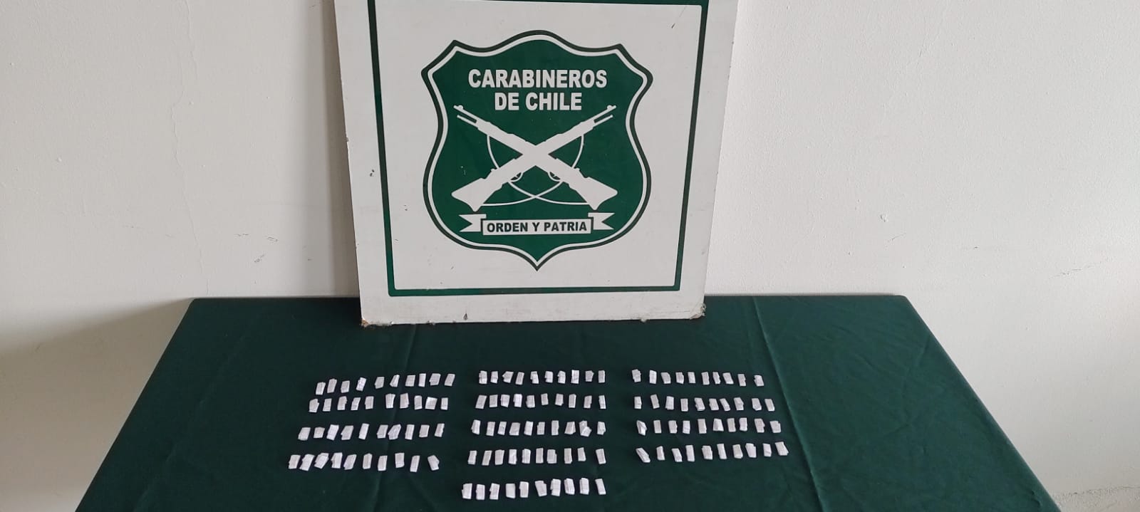 Su comportamiento evidente, permitió a los carabineros detectar que el individuo ocultaba algo entre sus vestimentas, encontrando una bolsa color blanco y, en su interior mantenía 130 envoltorios (papel blanco cuadriculados) contenedores de pasta base.