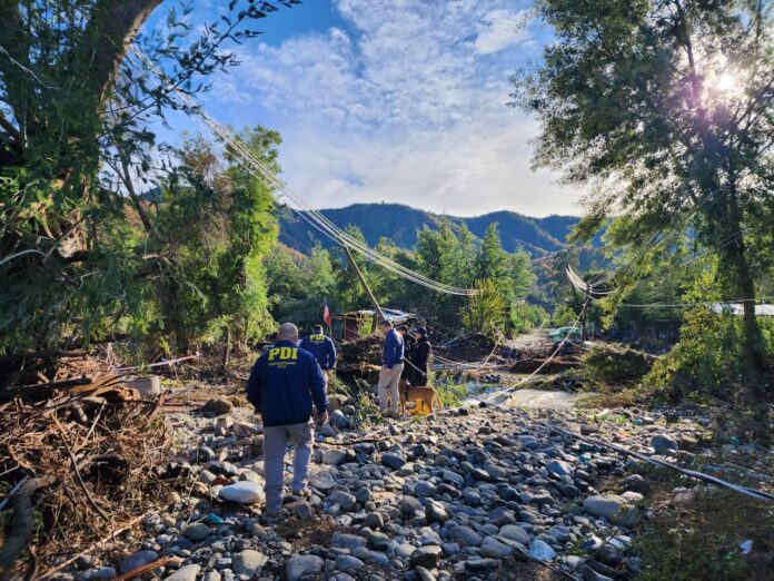 El equipo de Investigación Preferente de Presuntas Desgracias de la PDI, realizó diligencias por tierra y aire, para poder dar con el paradero de las dos personas extraviadas tras crecida del Río Ancoa. Simultáneamente, se sumaron cuatro vehículos de Carabineros y dos perros guías.