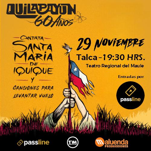 La icónica banda Quilapayún celebra sus 60 años en el Teatro Regional del Maule de Talca con la legendaria obra “Cantata Santa María de Iquique” el 29 de noviembre.