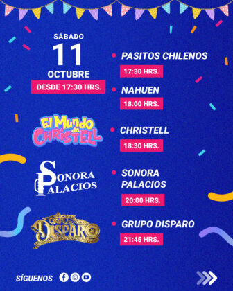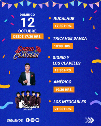 Además, el evento tradicional “161 Cuecas para el alma y el corazón” se trasladó para el sábado 18 de octubre a las 10:00 horas en la Plaza de Armas. El cierre del aniversario será el viernes 24 con el espectáculo de los carros alegóricos.