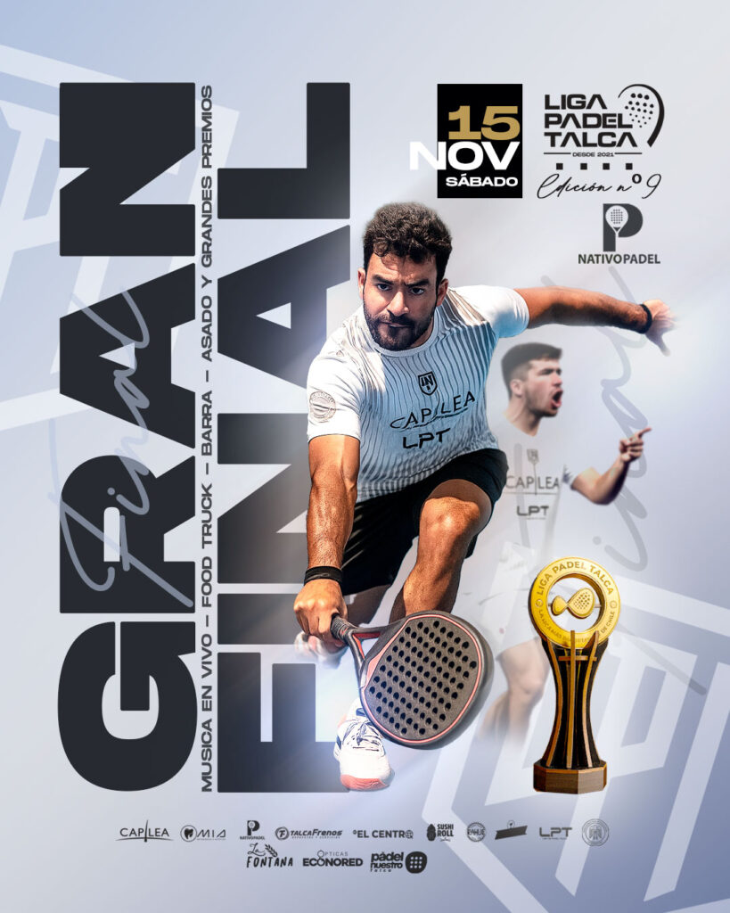 Tras cuatro meses de intensa competencia, la Liga de Pádel de Talca llega a su gran final el sábado 15 de noviembre, con una jornada cargada de deporte, música y entretención.