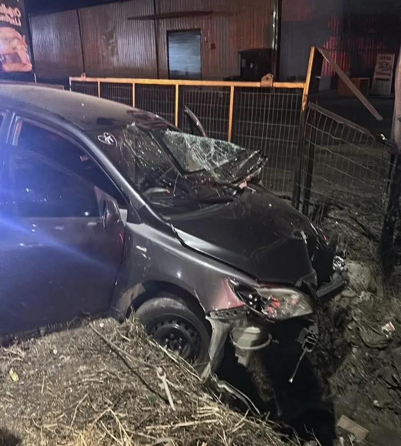De acuerdo con los antecedentes preliminares, un vehículo terminó fuera de control y terminó estrellándose. Primero impactó contra un poste del tendido eléctrico y luego contra el cierre perimetral de un local comercial.