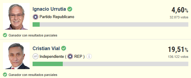 En la elección senatorial, el republicano Cristián Vial —quien alcanzó un 19,51%— arrastró al también republicano Ignacio Urrutia (4,60%). Como resultado, dejó fuera del Senado a aspirantes que superaron su votación. Uno de ellos fue Juan Antonio Coloma Álamos, que logró 6,78%.