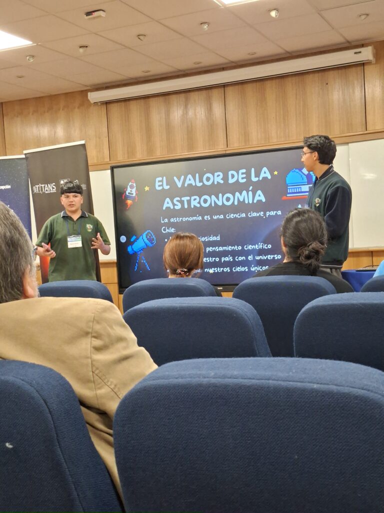 El primer lugar recayó en el equipo de Constitución, integrado por Mauro García Rojas y Mariano Jofré Parra, junto al profesor Andrés Freire Contreras. Su proyecto, “Aprender jugando: Creación de un videojuego RPG para potenciar el aprendizaje sobre Agujeros Negros Supermasivos”, fue destacado por su propuesta innovadora y su potencial pedagógico para acercar conceptos complejos a estudiantes de manera lúdica.
