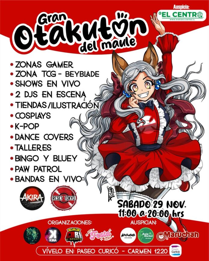 La Gran Otakutón del Maule se realizará este 29 de noviembre, entre las 11:00 y 20:00 horas, en Paseo Curicó (Carmen 1220), reuniendo a fanáticos de la cultura geek y otaku.