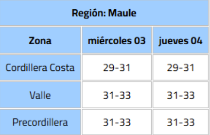 La Región del Maule enfrentará temperaturas entre 31°C y 33°C, según un aviso de la Dirección Meteorológica de Chile, que anticipa un marcado aumento del calor entre este miércoles y jueves.