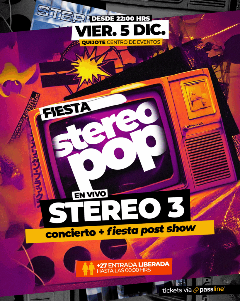 Talca disfrutará este viernes de una noche retro con Stereo 3, la banda que marcó los 2000. El evento incluye show en vivo, ingreso liberado hasta medianoche y un post show party para extender la fiesta.