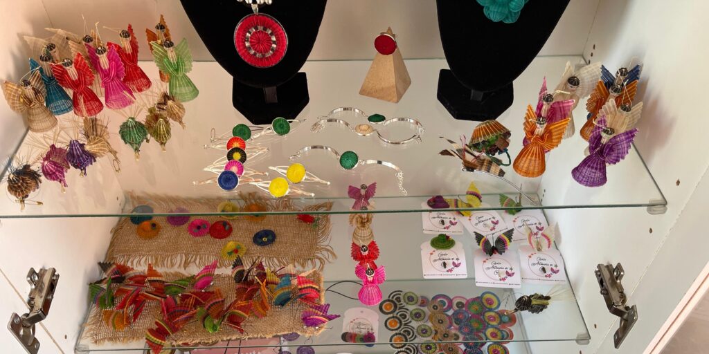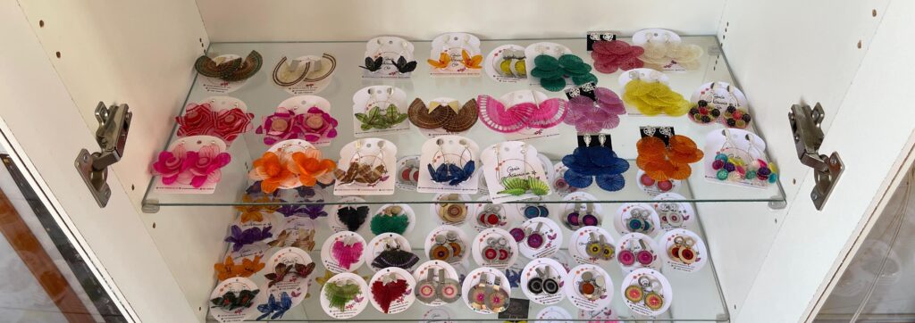 Me dediqué de lleno a la confección de joyas y accesorios. Aquí, vas a encontrar todo lo que es joyas y accesorios, aros colgantes, anillos, pulseras, pinches cintillos, Y es bien importante eso, porque es como que actualizamos la artesanía, le dimos un aire nuevo, un aire joven. La artesanía ya no es algo que yo llevo y lo guardo y lo dejo en la casa como un recuerdo, sino que lo llevo, lo voy a lucir, Voy a trabajar. Voy a una fiesta con un hermoso colgante. Un hermoso aro. No sé de Carola Artesanía.