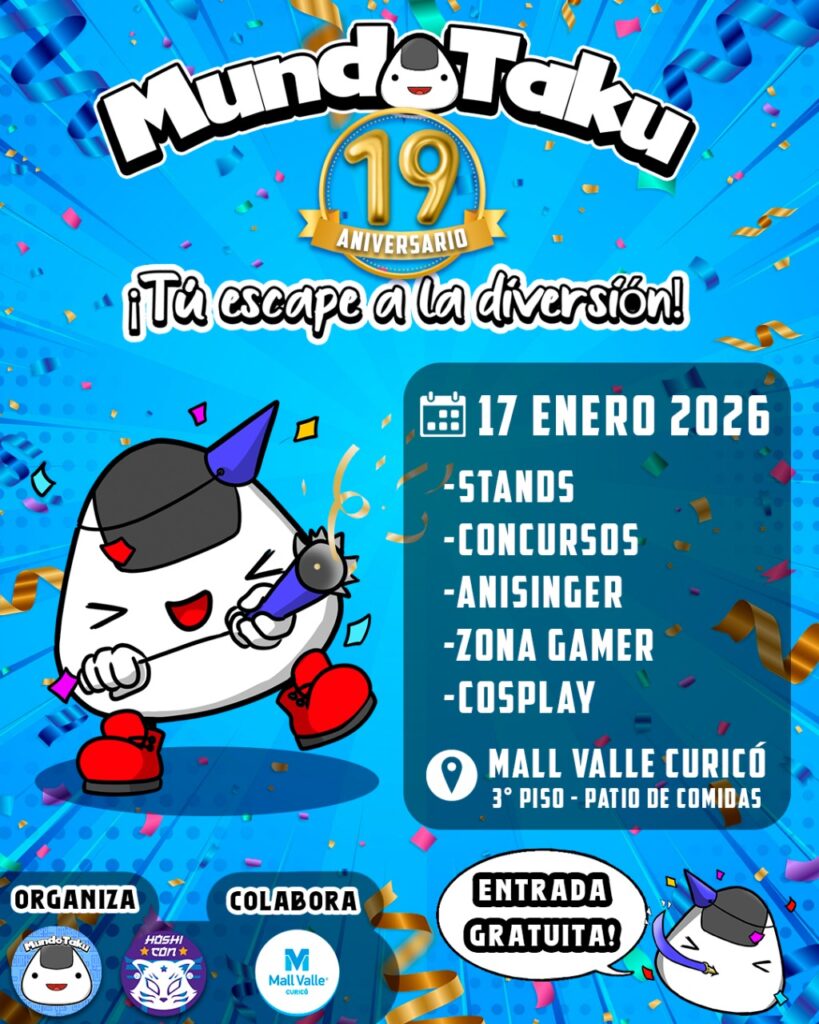 Esta actividad emblemática que desde hace casi dos décadas promueve el anime y los videojuegos del Maule. La cita será el sábado 17 de enero de 2026 en el Mall Valle Curicó, donde se desarrollarán diversas actividades gratuitas para todas las edades.