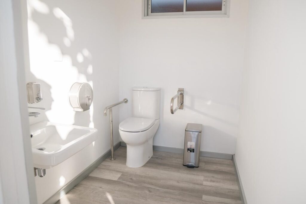 Estos nuevos servicios sanitarios se ubican junto al edificio municipal, en la intersección de calle Cintura con Catedral 50, y ocupan una superficie total de 45,65 metros cuadrados. El espacio fue diseñado para incluir baños diferenciados para mujeres y hombres, además de una instalación con accesibilidad universal y una bodega de apoyo. Asimismo, cuenta con una ruta accesible que conecta la acera existente con el interior del recinto.
