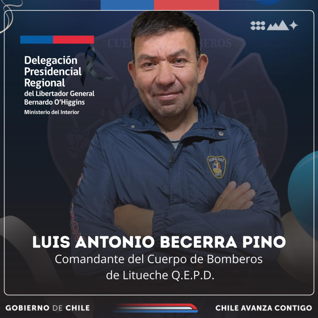 El alcalde de Litueche, Rodrigo Palominos, confirmó este lunes el fallecimiento del comandante de la Primera Compañía de Bomberos, Luis Becerra Pino, mientras participaba en las labores de combate de un incendio forestal registrado en la comuna.