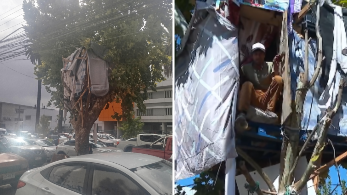 La estructura se ubicaba en calle 12 Oriente, entre 1 y 2 Norte, en un punto de alto flujo vehicular y peatonal, especialmente por la cercanía con el principal recinto asistencial de la región. Según reportaron vecinos, un hombre en situación de calle levantó la construcción hace cerca de dos años, utilizando materiales improvisados sobre un árbol.