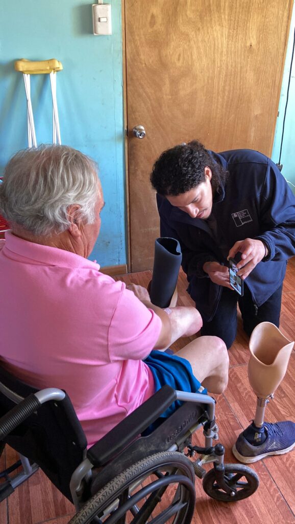 Durante la jornada, el usuario realizó su control médico acompañado por profesionales del equipo de rehabilitación local, lo que permitió desarrollar la evaluación clínica en un entorno cercano y con el respaldo de su red de salud territorial.