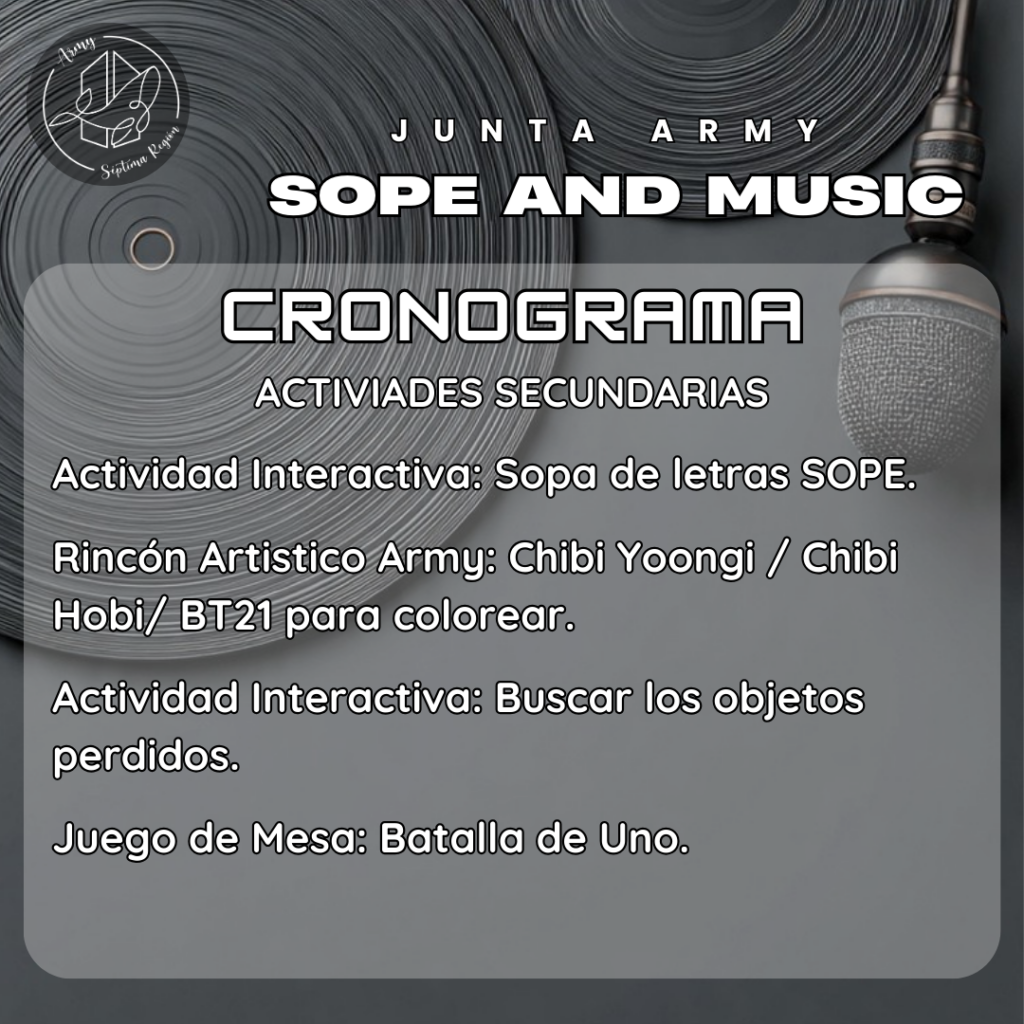 Durante la jornada, los asistentes podrán participar en diversas actividades, entre ellas concursos de baile, karaoke, sorteos y la venta de merchandising exclusivo, orientado a fortalecer la experiencia de los fanáticos y generar un espacio de encuentro.