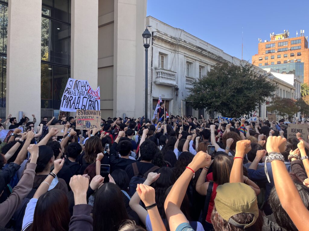 Asimismo, detalló que “en estos momentos se encuentran reunidos aquí un grupo de aproximadamente 400 estudiantes entre escolares y universitarios (…) Hasta el momento no se ha concretado ningún incidente. Se ha desarrollado todo en forma pacífica”.