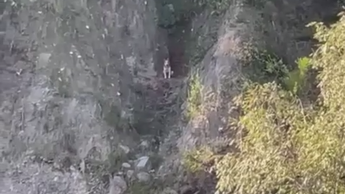 Bomberos desplegó un equipo especializado para rescatar a un perro que permanece atrapado desde el martes en una ladera de Potrero Grande, en Curicó.