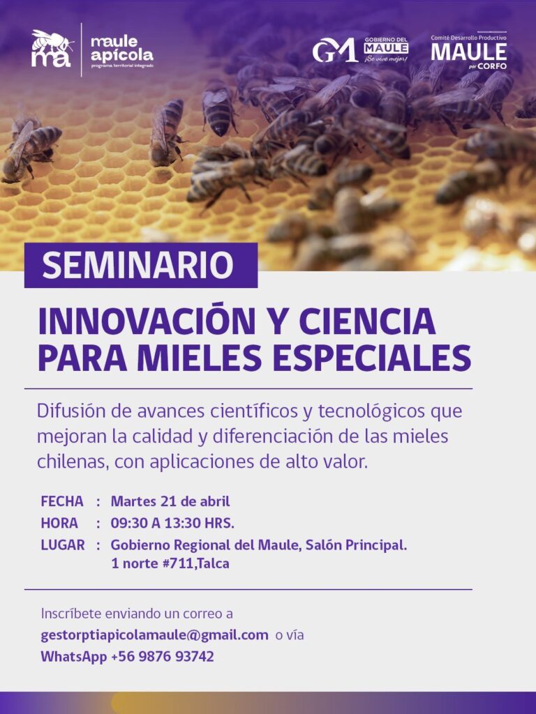Este seminario busca generar un espacio de intercambio de conocimientos y experiencias, contribuyendo al fortalecimiento del ecosistema apícola regional y posicionando al Maule como referente en innovación aplicada a la apicultura.